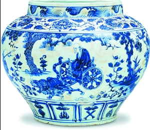 在《砥柱铭》拍卖前,《元青花鬼谷下山图罐》拍出约2.3亿元被视为天价。